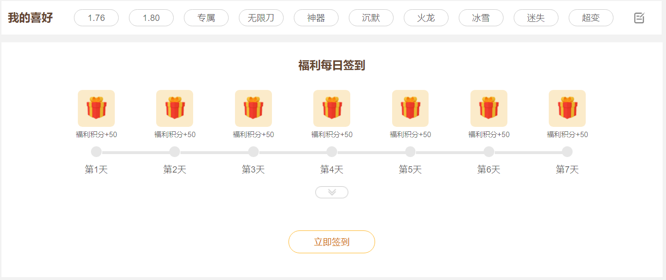 3,成功绑定的玩家每日可在玩家中心进行签到,赠送50福利积分可进行游戏充值兑换