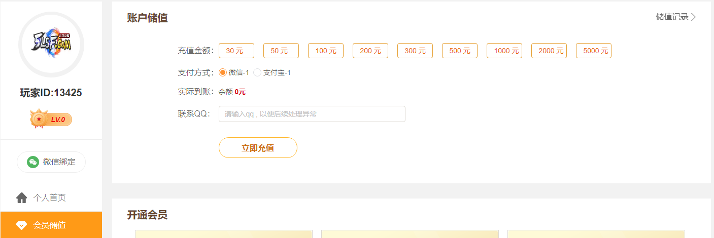 2,选择对应的充值金额使用微信或者支付宝扫码充值